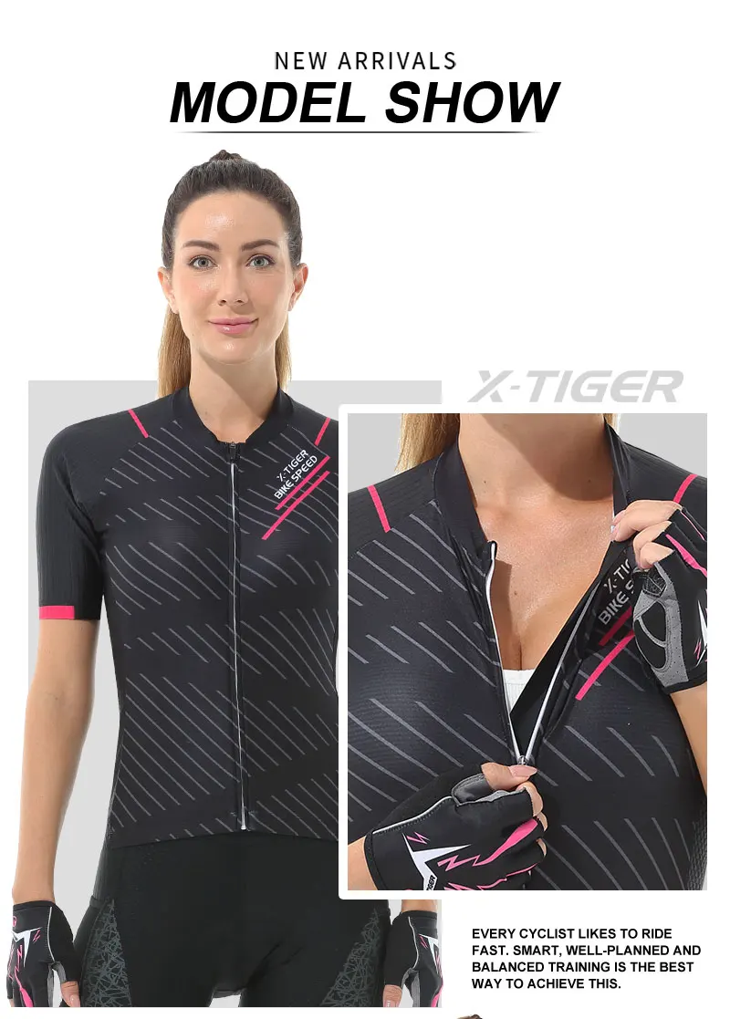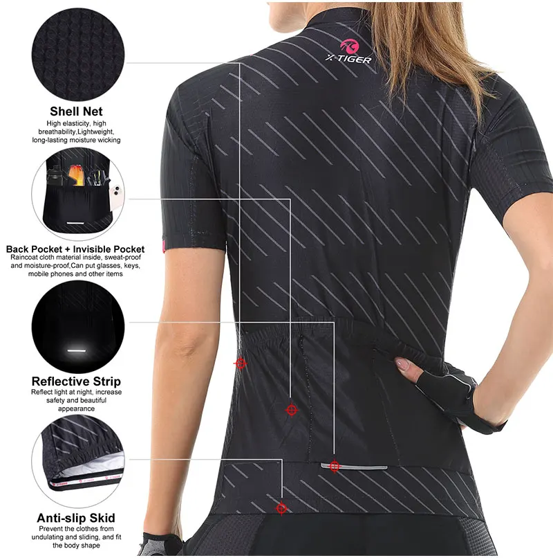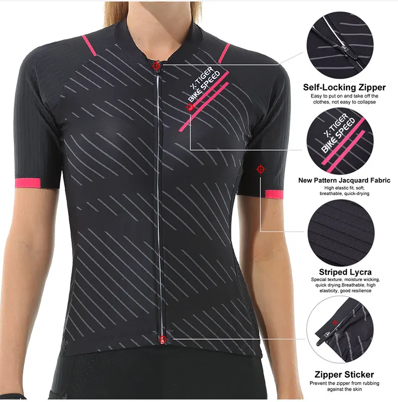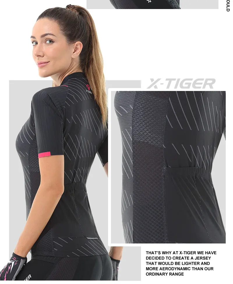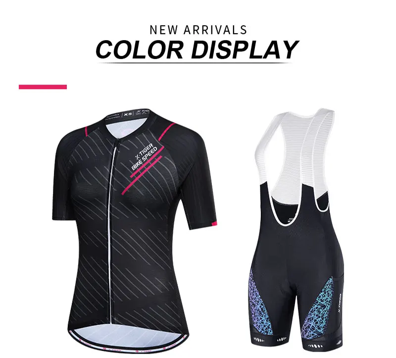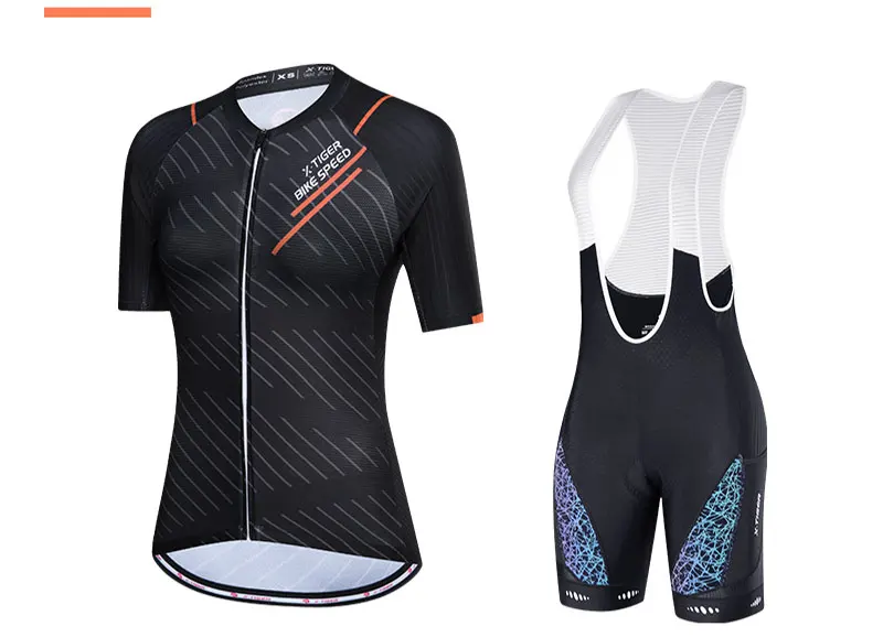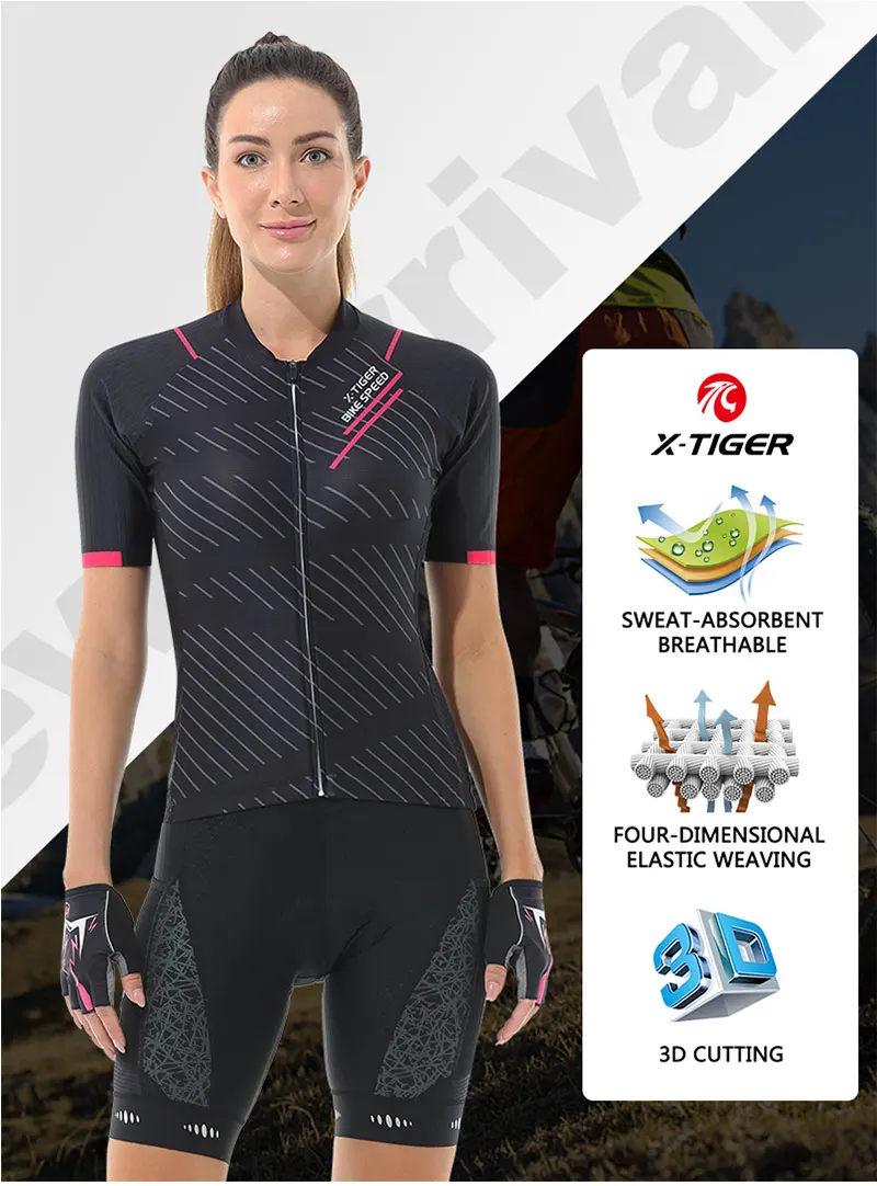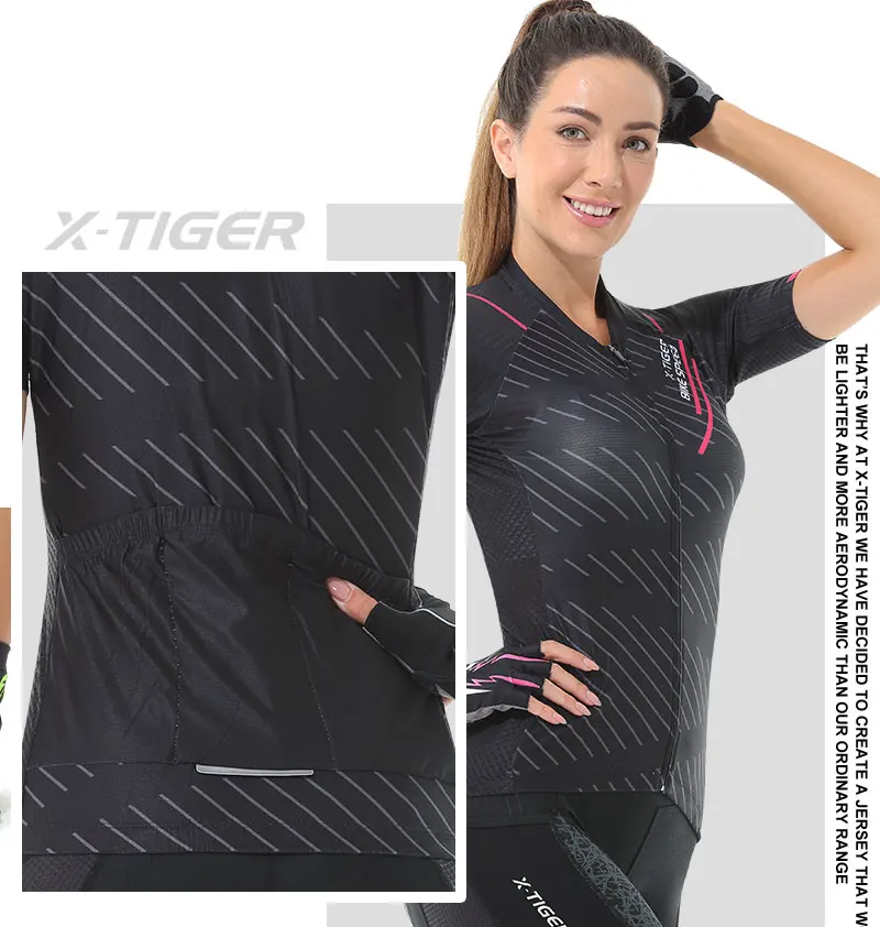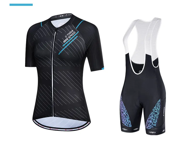 X-tiger feminino conjunto de camisa de ciclismo manga curta respirável roupas de bicicleta anti-uv ciclismo conjunto de babadores